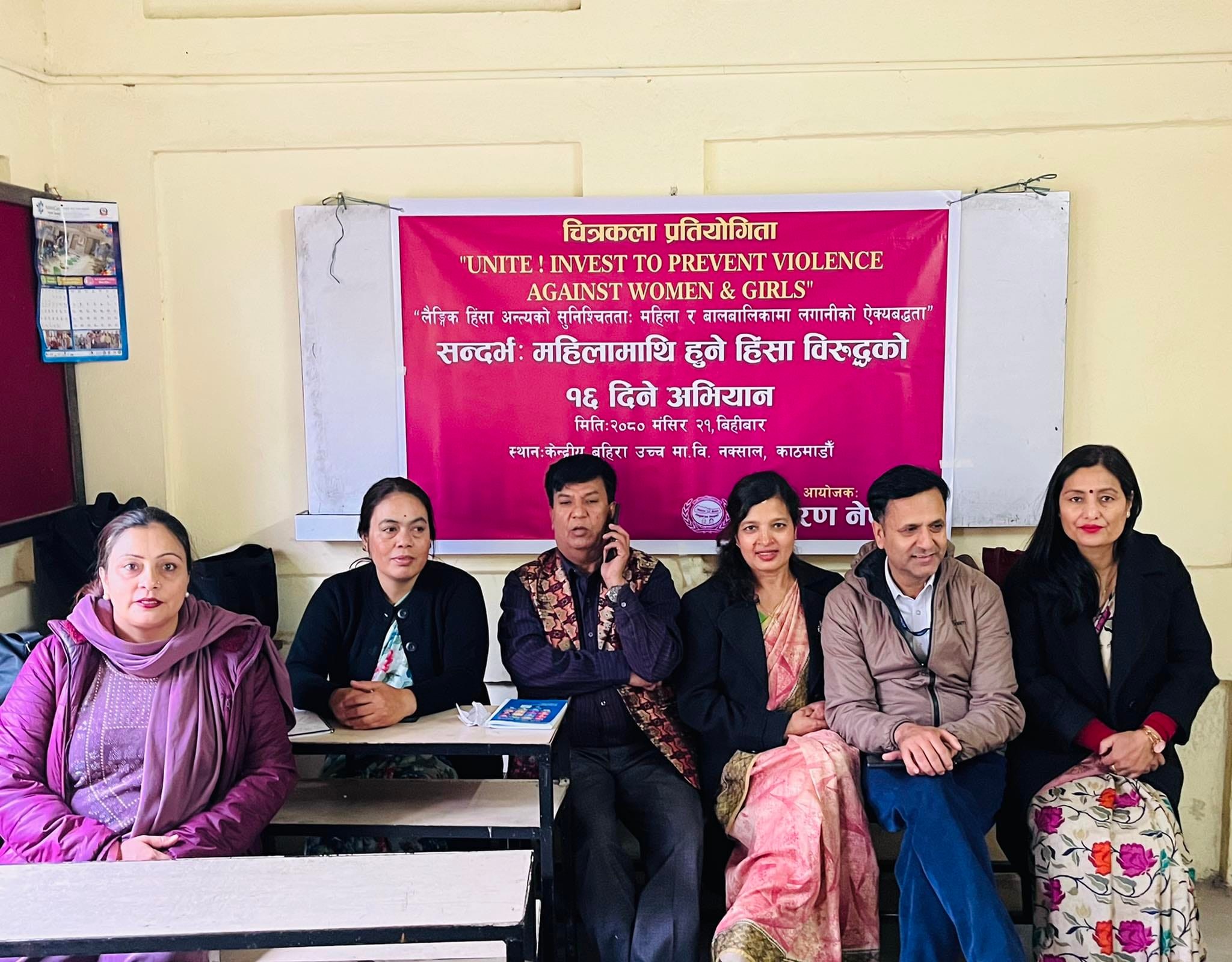 Our Photo Gallery ART COMPETITION IN THE CONTEXT OF 16 DAYS OF ACTIVISM AGAINST Gender Based Violence Jagaran Nepal and Shantimalika organized a program on Women Leadership Development and Challenges Interaction Program with Women Representatives on Climate Change Interaction Program with Adolescent Students marking on Gender Based Violence Distributing Relief Materials to Flood Victims in Kathmandu Valley Interaction Program with stakeholders on gender and inclusion perspective in the new election bill Jagaran Nepal in World Social Forum on Religious Extremism and Gender Based Violence – South Asian Perspectives EEDG National Level Workshop 102nd International Women’s Day Capacity Building Leadership Training Earthquake Support Event Celebration Submission of memorandum Lobby visit Jagaran Nepal’s 10 Years Celebration Support to beneficiaries One day induction program of EEDG in cen Protest Rally by Women Human Rights Acti Some Glimpses EEDG Project Launching Program Protest for Women Friendly Constitution WIP National Level Sharing