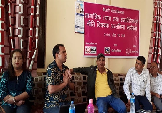 Jagaran Nepal has conductedone day’s Workshop on Social Justice and Inclusive Policy of Local Government under WoRLD Project of DCA. The program was carried out on 3rd June 2019 at Gauriganga Municipality and 4th June 2019 at Kailari Rural Municipality in the participation of GaurigagaMun – Mayor Bhim Bahadur Deuba, Deputy Mayor AnchalaChaudhary,Kailari rural Municipality Chair Person -LajuramChaudhari, Deputy Chair head – laxmiSatgauwaTharu and respective local government’s legislative members of and government staffs as well.